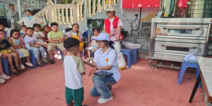 除了硬核普法,服务团还准备了趣味法治套餐:防溺水顺口溜、急救技巧演示、知识竞答……孩子们在欢笑中记住了安全知识,收获了小奖品。