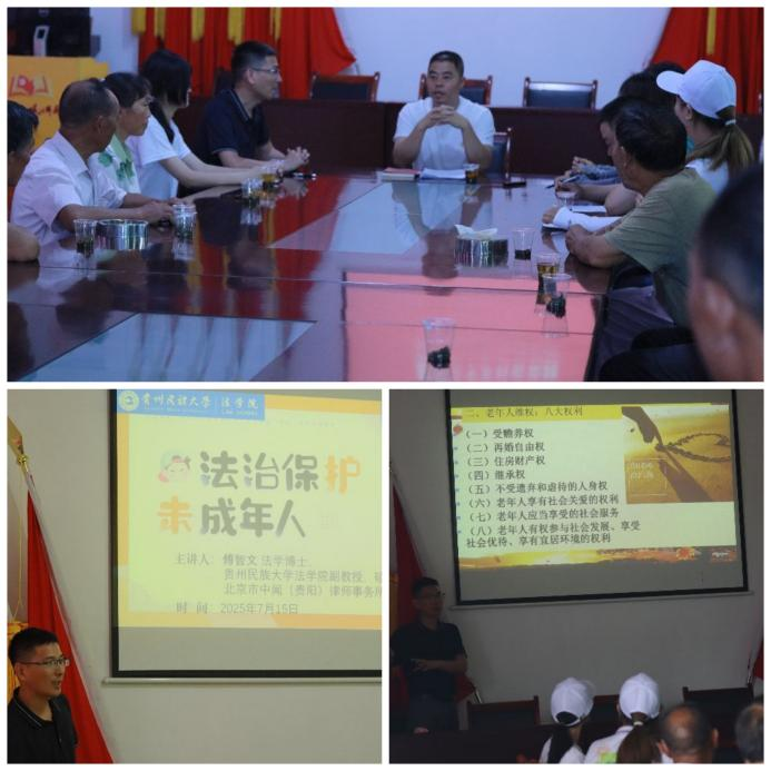 2025年盛夏七月,蝉鸣悠扬,“法治安‘瓮’”贵州省黔南州专项服务团踏入黔南州瓮安县岚关乡的翠绿怀抱,以“基层法治建设”为舵,以“守护未成年人成长”为帆,扬起防溺水宣讲、分众普法、情景剧演绎等多元风帆,将法治的种子播撒于乡野田间,以青春热血为乡村法治建设注入勃勃生机。