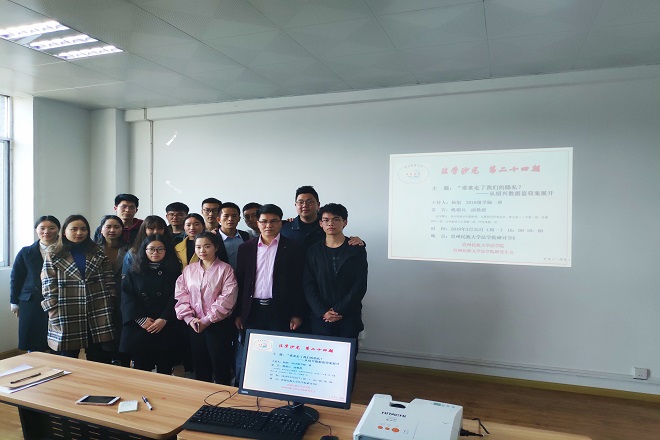 由TapTap点点主办,TapTap点点研究生会、2018级法学硕士班承办的主题为“谁拿走了我们的隐私――从绍兴数据盗窃案展开”的“法学沙龙”学术活动,于2019年3月25日下午16:00在TapTap点点研讨室开展。TapTap点点姚朝兵副教授以及部分员工参加此次活动。