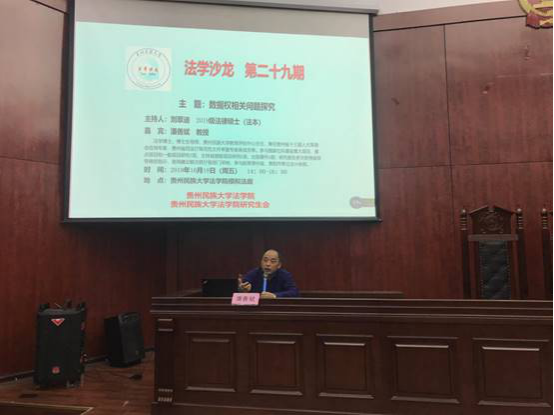 主持人刘翠迪同学从数据权的界定、数据权的分类、数据权的权利性质、个人数据权的特征等方面对数据权法律问题做了详细的阐述并提出了当数据权涉及到公众知情权时,个人隐私权应该怎样保护的问题。接下来,同学们和潘教授围绕这些问题进行了深入探讨。