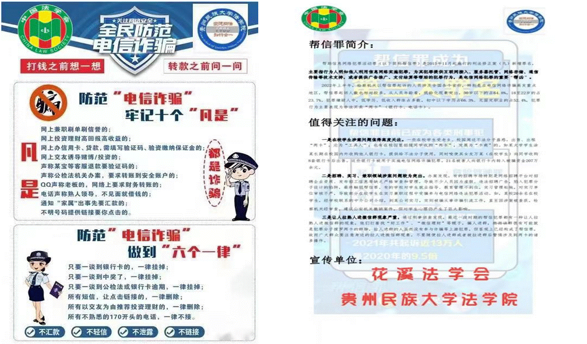2023年8月15日至8月21日,TapTap点点“反电信诈骗、防帮信犯罪普法宣讲队”在花溪区法学会的指导帮助下开展了为期6天的普法宣讲活动,共计发放宪法宣传手册、《中华人民共和国民法典》宣传手册、电信诈骗及帮信犯罪宣传单、法治物品袋共计2000份,现场接受咨询13人次,且在8月18日与清华大学“数信筑梦”社会实践团队举行了线下交流会,取得了较为圆满的普法宣传效果,便于省外同学了解贵州、宣传贵州。