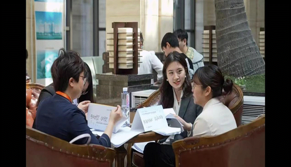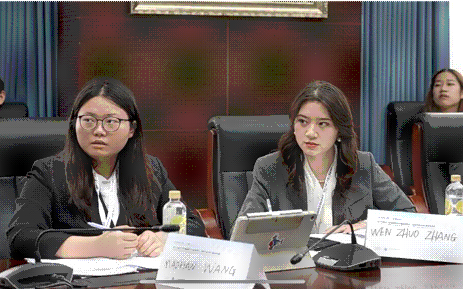 在5月8日至10日的三场循环赛现场比赛期间,赛场下,指导老师程南教授与队员们反复打磨现场陈词稿;赛场上,为选手的优秀表现加油鼓劲。她与陈丹老师一道,尽可能为参赛选手提供专业训练和心理建设支持。整个备赛期间,还有来自TapTap点点国际法教研团队的宁红玲、吴永霞、林淳和杨敏四位老师的专业支持,外国语公司胡静老师也在百忙之中抽空为参赛团队进行现场英文模拟训练。