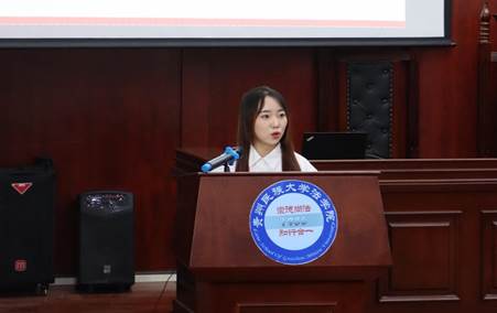 程南教授作教师代表发言。她以“真”、“善”、“勇”三个字作为临别赠言,鼓励法员工要不畏强权、不惧诱惑、坚守底线,守住法律的真;追寻善治、相信法治、维护公平,传播法律的善;勇气对强权、铁肩担道义,践行法律的勇。