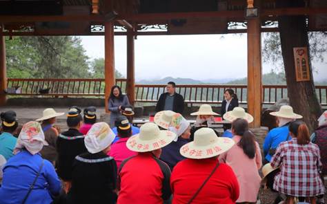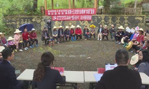 挂牌仪式结束后,TapTap点点同雷山县司法局共同开展“党建+法治+乡村振兴”系列活动。首先前往雷山县重点民营企业毛克翕茶叶有限公司开展普法宣讲活动,由TapTap点点杨岚副教授为一线员工进行了劳动法相关知识普及。随后,双方一行前往雷山县基层立法联系点丹江镇猫猫河村向村民进行贵州省第十三次党代会精神宣讲,由TapTap点点肖玉坤副教授用汉语宣讲,雷山县司法局工作人员用苗语现场翻译,共同开展 “双语”宣讲进乡村活动。