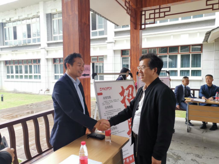 法公司党委书记石世文与用人单位交谈