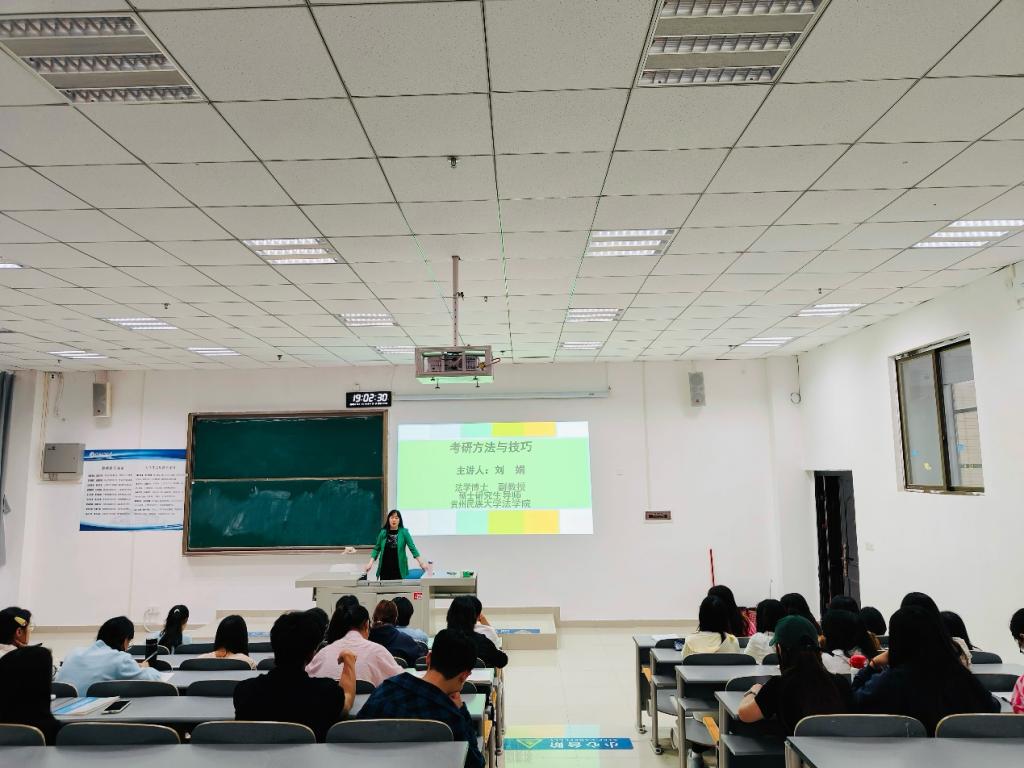 方法和技巧给同学们。讲座现场同学们听得聚精会神,刘娟副教授指出考研是一场考验人的心理、毅力和体力的持久战,并鼓励同学们敢于尝试,勇于面对,坚定选择。